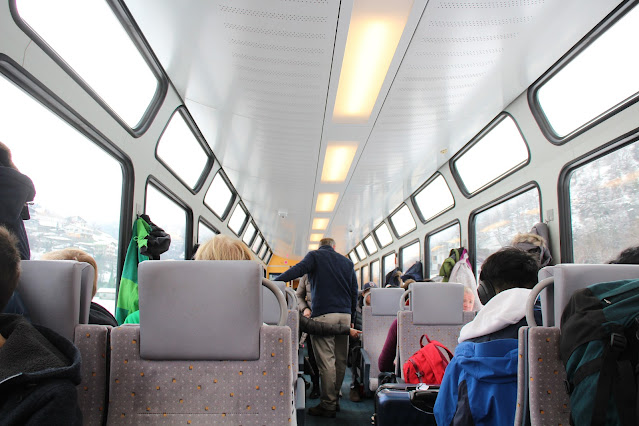 Brig(ブリーク)行きの車内、スイス国鉄は2階建て車両が多い、乗り換えのフィスプまでは丁度2時間、